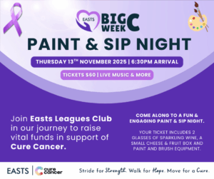 We will conclude the Inaugural Easts Big C Week with a relaxed community sausage sizzle and official cheque handover to Cure Cancer. A morning to take in a big week and to reflect what we’ve accomplished as a club and community.